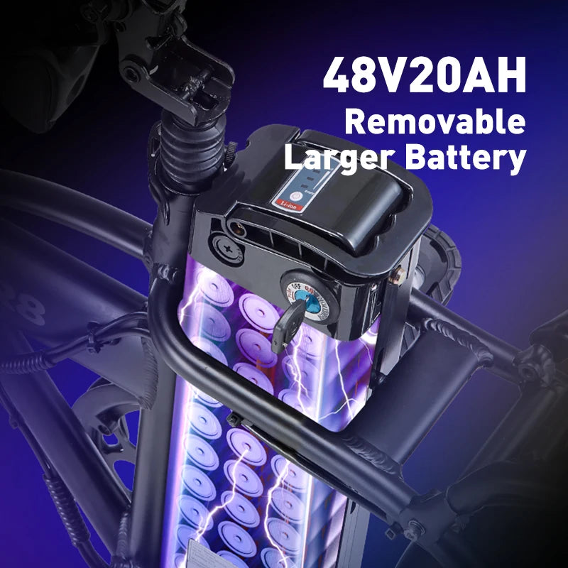 - Extended Range: Equipped with a 48V20AH removable lithium battery, enjoy rides up to 70-80KM on a single charge. Recharging is a breeze, whether at home or in the office.