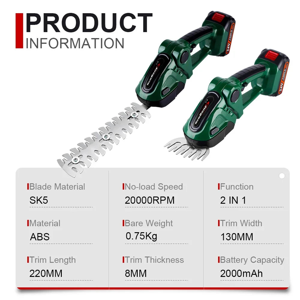 Yofidra 24V 2 in 1 Electric Hedge Trimmer: Household Lawn Mower, Garden Bush Scissors, Grass Scissors Power Tool